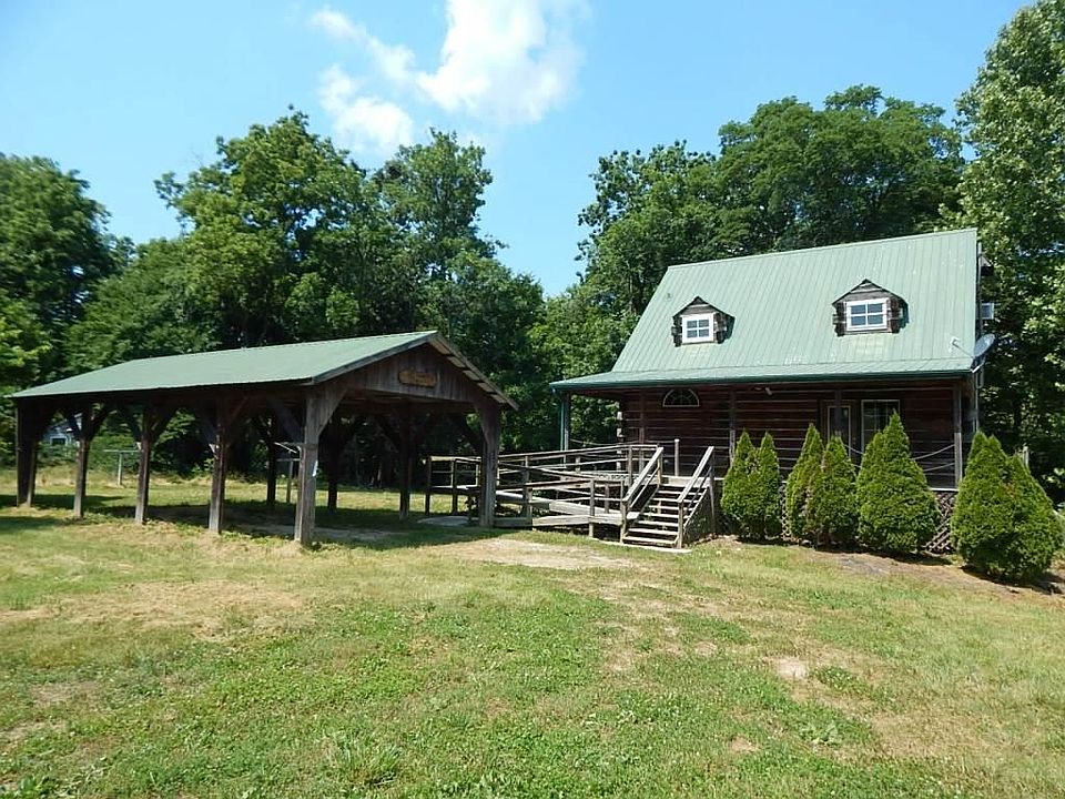 *PLEASE DO NOT SHOW, SUBJECT HAS AN ACCEPTED OFFER IN PLACE, WAITING ON SELLER RETURN OF CONTRACT DOCS.* You will not find a more truly unique and rustic home this close to the James River- the river is just a walk across your back yard! This is an incredible opportunity to own a private cabin within minutes of Nixa Schools and amenities. There is plenty of room to create more bedrooms in this custom lodge-style home, and with the open floor plan and privately maintained road- this is the perfect home for entertaining. Lots of room for storage in the basement John Deer room, lovely wide plank hardwood floors, 4 car carport, and a one room schoolhouse look-a-like guest apartment make this a seriously one-of-a-kind treasure! With a little imagination, some TLC, and a few rocking chairs for