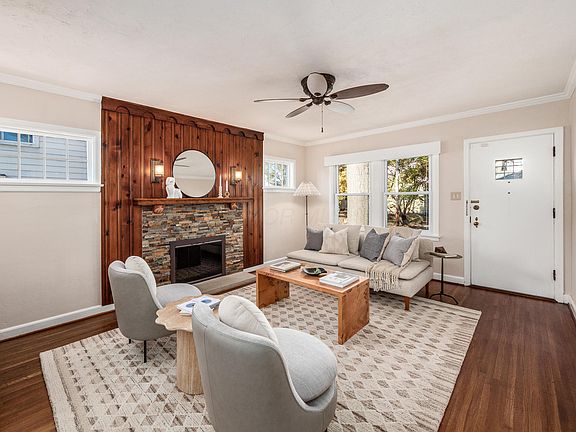 Welcome to your darling single-story home-sweet-home in desirable Clintonville! Offering two serene bedrooms & a beautifully designed bath featuring a zero-entry travertine shower, this impressively maintained home blends comfort, beauty, and practicality. Gorgeous original woodwork & elegant arched doorways bring warmth & character, while the living room, featuring a knotty pine accent wall & tiled fireplace, provides a cozy retreat for enjoying quiet moments or entertaining guests. The dining room is complete with built-in service storage, & the updated kitchen, equipped with a full suite of stainless appliances, combines style & efficiency. A spacious walk-in bedroom closet, convenient linen closet, expansive basement, & detached garage make this home as functional as it is charming
