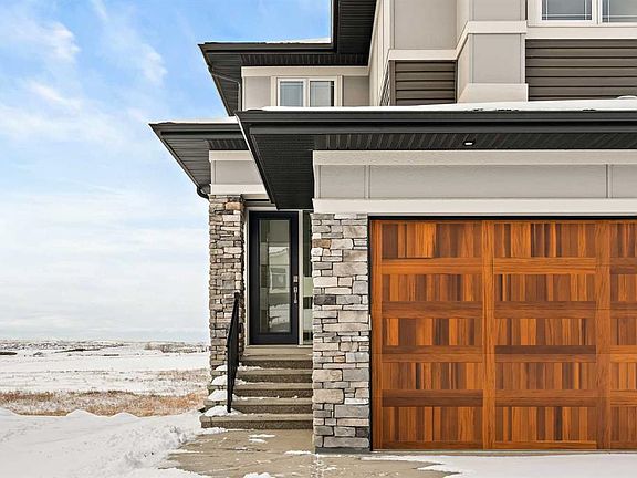 The stunning Savona 3 Estate model by Brookfield Residential is now available in the community of Livingston. Situated on a premium walkout lot backing directly onto green space, this home offers the rare luxury of no neighbours directly behind. This fully developed residence features 4 bedrooms, 3.5 bathrooms, 3 spacious living areas, and a dedicated office, offering the perfect blend of design, functionality, and high-end finishes. Set on a 4,844 sq. ft. east-facing lot, this beautiful property boasts over 3,500 sq. ft. of developed living space across three levels. The main floor features a bright, open-concept layout with 9’ ceilings, 8' doors and hardwood flooring throughout. Expansive rear-facing windows flood the home with natural light throughout the day, creating a warm and inviting atmosphere. The gourmet kitchen is equipped with full-height cabinetry and a premium suite of stainless-steel appliances, including a gas cooktop, chimney-style hood fan, built-in wall oven and microwave, and a French-door refrigerator. A large walk-through pantry adds both functionality and additional storage. The kitchen flows seamlessly into the adjacent dining area, which easily accommodates a full-sized dining set, and the impressive rear great room featuring an open-to-above design and a full-height tiled gas fireplace overlooking the backyard. Completing the main level is a generous front foyer, a versatile office/flex room, a 2-piece powder room, and a rear mudroom with a large walk-in closet for added storage. Upstairs, the primary suite (14’ x 13’) overlooks the backyard and includes a spa-inspired ensuite with a fully tiled glass shower, deep soaker tub, dual sinks, and a walk-in closet complete with storage. Two additional bedrooms, a well-appointed 4-piece bathroom, a large bonus room, and an upper-level laundry room complete this floor. The fully developed walkout basement adds nearly 1,000 sq. ft. of additional living space, including a fourth bedroom, full bathroom, and a bright recreation/media room with large windows. A wet bar and flexible open area make this an ideal space for a home gym, playroom, or entertainment zone. The west-facing backyard offers ample space for children, pets, and outdoor entertaining. A triple-car garage completes the property, providing exceptional storage and secure parking year-round. Backed by Brookfield’s comprehensive builder warranty and the Alberta New Home Warranty Program, this move-in-ready home offers both quality and peace of mind. Located in the vibrant community of Livingston, residents will enjoy access to parks, pathways, and future commercial amenities.