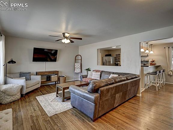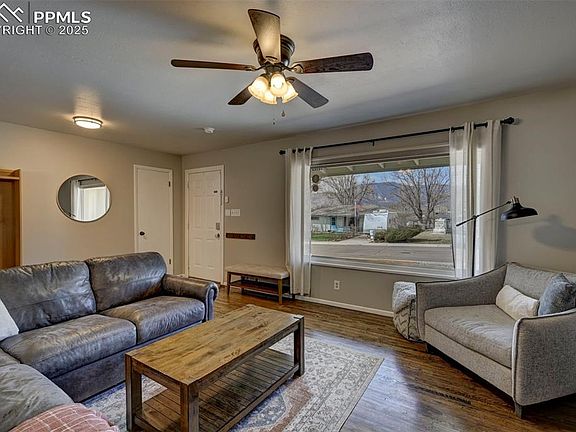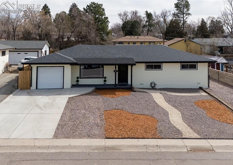 This absolutely charming ranch home is one-level living at its best. The home sits on a fully landscaped/xeriscaped lot in an established neighborhood close to restaurants, shopping, schools, and more. The front of the home has an inviting covered porch with mountain views; all you need are some lounge chairs and lemonade! The backyard is fully fenced, has a 40'x13' covered concrete patio that's perfect for entertaining, and includes an oversized 2-car garage built in 2023. The new detached garage includes an additional workspace and a separate 140 sq ft room with its own heating & AC unit, perfect for a private office, music room, studio, etc. Inside the home, the original floorplan has been opened up, leaving the living room, dining area, and kitchen bright and airy. Large "Renewal by Anderson" windows let plenty of light into the main living space and allow the original hardwood floors to shine. The kitchen is a true gem, wide open with plenty of butcherblock counter space, stainless steel appliances, and a breakfast bar. Off the kitchen is a large laundry room/mudroom with tons of storage, and it walks out to the attached garage and to the backyard. There are three bedrooms, all with original hardwood floors. The primary bedroom has double closets and an attached bathroom. The main bathroom has been beautifully remodeled and has a roomy double vanity. More bonuses to this home include a brand new roof with Class 4 impact resistant shingles along with new gutters and downspouts (March 2025), air conditioning, and fresh attic insulation. With its expansive range of desirable features, this home promises an easy living experience with small neighborhood charm. Don't miss your chance to make this home your very own!