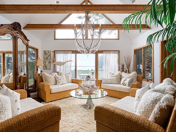 Rental Registration #: RP-25-419 Experience the epitome of summer living in this impeccably maintained beachfront residence, ideally situated on the serene shores of Great Peconic Bay in Aquebogue. This designer-owned property offers a timeless coastal ambiance, where every detail has been thoughtfully curated to enhance comfort, style, and relaxation.Wake up to breathtaking sunrises and unwind with stunning sunset views, all from the comfort of your own private oasis. The expansive sandy beach provides direct access to the bay, perfect for swimming, kayaking, or simply enjoying the tranquil waterfront setting.The home features three well-appointed bedrooms and one and a half bathrooms, offering ample space for family gatherings and entertaining guests. The recently renovated chef's kitchen is equipped with Kitchen Aid appliances, custom cabinetry, and elegant finishes that seamlessly blend functionality with beach-inspired design. Updated bathrooms complement the home's aesthetic, providing a fresh and modern touch.If you're seeking a seasonal escape, this exceptional property delivers the ultimate in coastal living. Don't miss the opportunity to experience a piece of paradise in one of Long Island's most desirable waterfront communities.