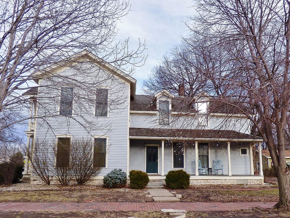 Available Nov 1st 2025. Here is your chance to live in a one-of-a-kind historic Greek Rival with original woodwork, built-ins and antique chandeliers. Main floor master with stained glass window and attached bathroom. Huge formal dining room with a breathtaking chandelier. Upstairs includes 3 large bedrooms some with floor to ceiling closets, office and bathroom. Plenty of updates over the years complete with a large caterers kitchen with lighted cabinetry. Outdoor space includes three porches and a brick patio. Everything about this property screams GRAND! Pictures don't do it justice- you must look inside! Located on a large corner lot just blocks away from the Blue Earth Plaza and Manhattan's main street- Poyntz Ave. No smoking inside or out. Fixed dogs over the age of 2 with excellent rental history to be considered. NO cats. NO extra large breeds.