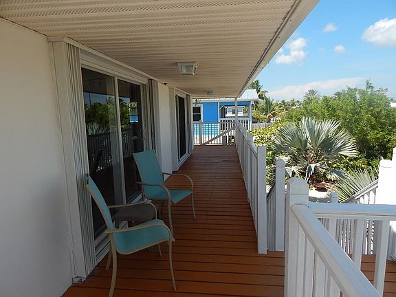 This home is a monthly vacation rental that must be rented for 28 days or greater. Here is the hidden treasure you have been looking for. Pirates Pointe is a great get a way for you and the family. Located in the Jolly Rodger subdivision at mile marker 28 which boasts excellent deep draft boating. Dolphin Marina is located at the entrance to the subdivision making it easy to launch your boat, get gas, snacks and all your fishing needs. It is also where the boat shuttle to Little Palm Island is located; that will take you to one of the most famous dining experiences in the Lower Keys. The home is pleasantly decorated in soft leather furniture, comfy beds and crisp linens. This home offers all tile floors and generous spacious rooms. 2 bedrooms upstairs and bath and connected by an exterior stair case to a small suite on the lower floor. The kitchen is a joy and has everything you will need for all the fantastic meals you will make for you and your guests. Enjoy the porch overlooking the crystal clear canal, great for swimming. This vacation home has beautiful sunset views over the salt ponds for spectacular sunset colors every evening. This home is a monthly vacation rental that must be rented for 28 days or greater.