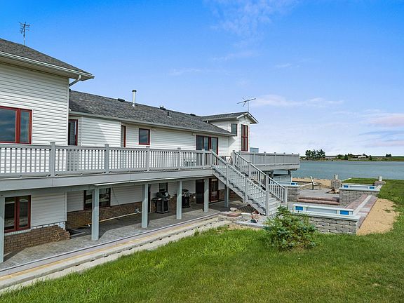 Experience to the serenity of lakeside living with this remarkable cabin just a brief 25-minute drive from Minot. Situated on an exceptional lakefront property with over 300 feet of pristine shoreline, this grand cabin of 5000+ square feet offers 5 bedrooms, 5 bathrooms, a walkout basement, a spacious bonus room above the garage, a charming wraparound deck, a 3-car attached garage, and a private dock, creating the perfect lakeside getaway. Natural light floods the cabin through numerous windows, providing breathtaking views of the lake and the picturesque surroundings. The basement is an entertainment haven, featuring a large bar, 2 bedrooms, a cozy family room, and 2 bathrooms. The main level showcases a beautiful kitchen with oversized windows, stainless steel appliances, pantry, a convenient laundry room with 1/2 bath, a welcoming living room, office space, 2 bedrooms, 3 bathrooms, and a luxurious primary bedroom retreat with a spacious walk-in closet, vaulted ceilings, and a shower. Ascend to the upper level to discover a spacious bonus room above the garage, ideal for entertaining with its well-appointed bar and inviting fireplace. The 3-car attached garage offers in-floor heating for year-round comfort and convenience. The property has two geothermal systems; one for heating and cooling the house, and another for the garage. Don't miss the chance to own this magnificent lakeside property, where every day feels like a retreat.