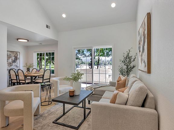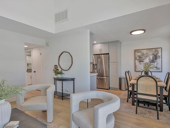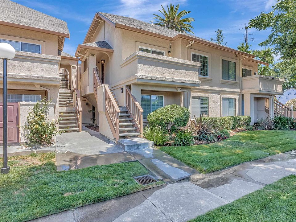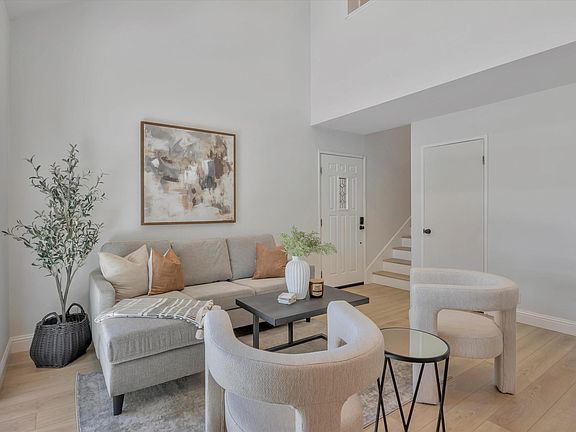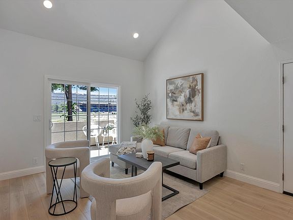 This stunning residence combines modern luxury with exceptional convenience. This beautifully upgraded home boasts luxury vinyl flooring throughout, creating a sleek and stylish foundation for your living space. The state-of-the-art kitchen is a chef’s dream, featuring quartz countertops, stainless steel appliances, and elegant recessed lighting. The in-unit washer and dryer add to your convenience, making daily chores a breeze. Retreat to the private primary suite, the only space located upstairs, ensuring unparalleled privacy. The suite includes a spacious walk-in closet and a private balcony. The upgraded bathrooms exude a spa-like ambiance, perfect for relaxation. Storage will never be an issue with ample storage solutions thoughtfully integrated throughout the home. Additionally, the detached 1-car garage provides secure parking and extra storage options. Located just two short blocks from downtown Pleasanton, the ACE Train, and the fairgrounds, this home offers the perfect blend of tranquility and accessibility. Enjoy the vibrant local dining, shopping, and entertainment options just minutes away or sit on patio where you can unwind while watching the horse races.