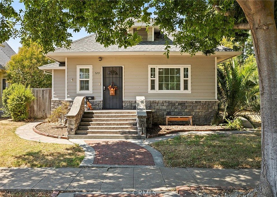 Don’t miss your chance to own this wonderful home filled with classic charm! Seller is offering a $10,000 credit towards closing cost concessions with an acceptable offer! This property welcomes you with a foyer that leads into a spacious living and dining area highlighted with lots of windows bringing in the natural light. The high ceilings give this home that grand ambiance. Updates include fresh paint, new flooring, and a solar system with two backup batteries for energy efficiency that is a power purchase agreement that the buyer is to assume. The kitchen is a true standout, offering generous counter space with tile finishes, perfect for meal prep, along with an oversized walk-in pantry to keep all your kitchen essentials organized. There is a breakfast nook off the kitchen, which is perfect for enjoying that morning cup of coffee. The 2 bedrooms and 2 bathrooms are roomy and the bedrooms have nice closet space with extra storage. Central heating and air is present as well as, a whole house fan, to keep the home comfortable year-round. Step outside to a large backyard—ideal for gatherings, gardening, or creating your own private retreat. The detached garage is a great space that you access through the alley way, and the cement slab next to it is great for additional parking. This home is nestled in an established neighborhood close to schools, shopping, restaurants, and downtown amenities, this home truly has it all! Buyer to verify all information to their satisfaction.