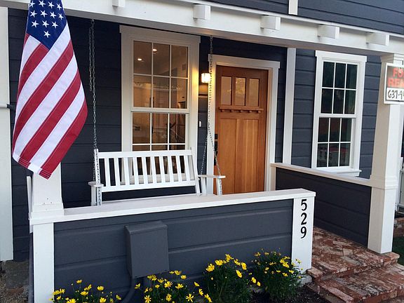 Craftsman-style propertySpiral staircaseFront porch swingCozy couchString lightsTall ceilingsArchitectural gem