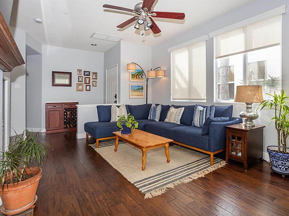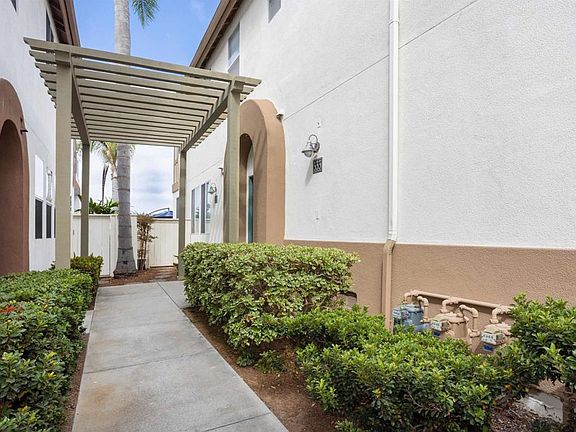Location, Location, Location… Do not miss this amazing Encinitas townhouse located in the coveted, gated community known as Saxony @ Encinitas Ranch. This home is warm and inviting with tons of natural light. Two levels, 2 bedrooms, each with ensuite full bathrooms, another ½ bath downstairs and an attached single-car garage with epoxy flooring and integrated storage-as well as a reserved parking space only steps from the front door. The house is thoughtfully appointed throughout, featuring beautiful wood laminate floors, granite counters, stainless kitchen appliances and California closet features in the bedrooms for additional storage. This private corner unit is nestled conveniently near the back of the professionally landscaped property. On a clear day, you’ll enjoy a peek ocean view from the primary bedroom & breathtaking sunsets and tranquil ocean breezes every day of the week. Step outside to enjoy the fenced patio area that features a relaxing seating area, mature palm trees and lots of privacy. Saxony at Encinitas Ranch also offers a beautifully maintained pool, spa, and BBQ area with controlled access, 24 hour security cameras, unit fire suppression systems, as well as a dedicated on-property dog park for exclusive use by Saxony residents—all included at some of the lowest HOA dues anywhere in the city. Possibly, the perfect central Encinitas location, with easy access to the 5 Freeway by way of Leucadia or Encinitas Blvd and the Encinitas Coaster station only minutes away. Take a short walk to the fabulous Magdalena Ecke YMCA, enjoy a round of golf at storied Encinitas Ranch Golf Course, or take a leisurely bike ride to Moonlight Beach or downtown Encinitas which abounds with shops, bars, and restaurants—all just minutes away. Welcome home!