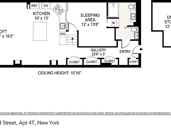 The large sleeping area or home office ideal for privacy and quiet is a versatile and welcoming room with dual access situated off the bathroom or living room outfitted with glass sliding doors. The chic bathrooms have been re-configured and exquisitely renovated as a large en suite bathroom serving the sleeping area with a large shower stall, glass door and enlarged vanity connected via a sliding barn door to the separate powder room for guests with dual access via the gallery entrance or full bathroom. Immense storage includes four large closets and a massive under storage area for year-round safekeeping. Sleek updated hardwood floors throughout complete this unique home amongst a sea of cookie-cutter apartments.