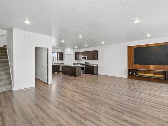 Gorgeous townhome with an open concept living area. Spacious kitchen with a large island and pantry. Unbelievable 4-car garage. Basement framed with some electrical and plumbing for a possible mother-in-law apartment or private office, perfect for working from home. 3 bedrooms on the top floor with the laundry room conveniently located next to the bedrooms. Private fenced backyard, with a gate to the large open common area. Community pool and clubhouse nearby, along with playground and pickleball courts just across the street. Conveniently located in Eagle Mountain, one of the fastest-growing cities in the state. Parks, shopping, and much more are close by in this prime location! Images are virtually staged. Square footage figures are provided as a courtesy estimate only and were obtained from county records. Buyer is advised to obtain an independent measurement.