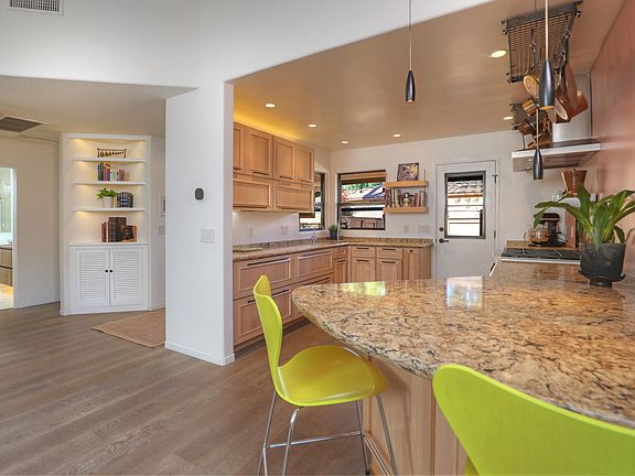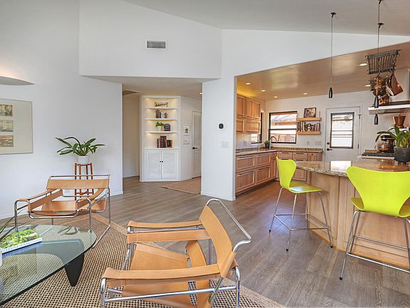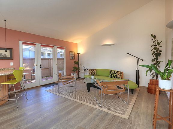 Beautifully updated, single level condo. A cottage style end unit with lots of light! Vaulted ceilings and a wall of glass in the living space leads to a wrap around East facing patio, The remodeled kitchen has beautiful cabinets, stone counters, high end Wolf & Sub Zero appliances & bar seating at the peninsula. Newer furnace & water heater + French Oak wood floors throughout. The oversized primary bedroom also has vaulted ceilings, generous closet space and a sunny West facing window. The 2nd bedroom leads to a 2nd large patio. Gorgeous updated bathroom with walk-in shower and custom vanity. Two car carport, large storage unit & common area tennis court are part of the HOA.