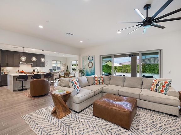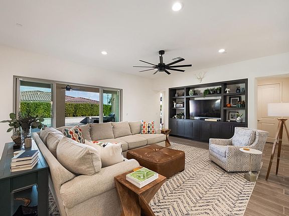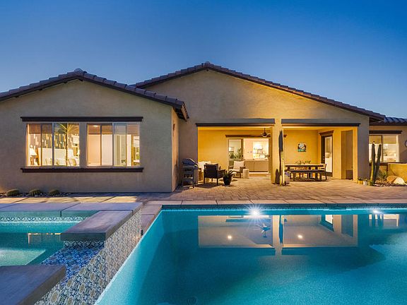 Welcome to this stunning 2,911 SQ FT home in the highly sought-after gated community of Carmela. This extensively upgraded 4BD, 3.5BA beauty features owned solar and smart home technology for modern convenience. The open-concept floor plan seamlessly blends living spaces, including a formal dining room and a versatile office/media room. The custom backyard is an entertainer's dream with a paver patio, California room, saltwater pool, spa, tanning ledge and meticulously maintained landscape complete with landscape lighting. Inside, the kitchen boasts elegant waterfall countertops, a butler's pantry, and top-of-the-line stainless steel appliances, including a Sub-Zero refrigerator. Throughout the home, you'll find custom built-ins throughout and tasteful upgraded light fixtures and ceiling fans. The spacious primary suite offers a luxurious bathroom featuring both a spa like rain showerhead and handheld wand. A separate soaking tub adds to the relaxation. Located in a quiet, secure neighborhood, this home is the perfect blend of luxury and comfort. This home is a must-see!