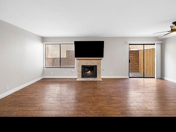 The home features a one-car garage in addition to a private carport with an access to a community pool and spa.