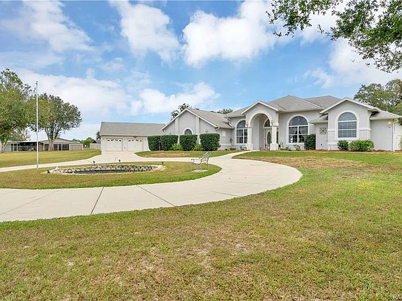 Serene and enduring tree lined driveway leading to an impressive 2001 3/3/5 pool home w/ 2698 living nestled on 4.64 breathtaking acres. Interior boasts a spacious kitchen with wood cabinets, breakfast bar, pantry, nook, formal living & dining rooms, family room, interior laundry, cathedral & tray ceilings, split & open floor plans and a sweeping master suite and a multitude of perks. Exterior features a double door entry, 34x10 covered lanai, caged pool w/ waterfall, 34x10 Covered lanai, full pool bathroom, gazebo, fully fenced, carport, three car detached garage and circular driveway. Seller including a FREE one year home warranty. Call to schedule a private tour!