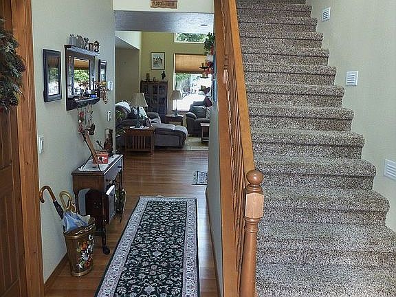 Located within Twin Lakes Village, a quiet, friendly, and well-maintained golfing community, 45 min from Spokane Airport and 30 min or less to shopping centers in Coeur d’Alene, ID, Post Falls, ID, and Spokane, WA Built in 2006, this impeccably kept, south-facing, 4 bedroom, 2 ½ bath, single owner home, sits on a double lot of 16553 sq ft, has 2200 sq ft of living space, numerous upgrades, an attached two car garage, a separate attached golf cart garage, a covered front porch, a large rear patio, and eye-catching landscaping TWIN LAKES VILLAGE AMENITIES: Unlimited golf for residents Beautiful North Idaho 18-hole golf course with clean, white sand bunkers, abundant water hazards, and tall Douglas pine, fir, and cedar trees that provide a true golf challenge Natural grass driving range, well maintained putting and chipping practice greens, and practice sand bunker Clubhouse with a full-service pro shop, full-service restaurant, “19th hole” lounge, and several function rooms Tennis and pickle ball courts and a community non-chlorinated swimming pool Children’s playset area and other common areas for social gatherings and lawn games Private community beach on Lower Twin Lake, with boat docks, a fishing dock, and kayak storage racks Snow plowing, groomed cross country ski trails on fairways, and ice fishing on Twin Lakes in winter INTERIOR HOME FEATURES AND UPGRADES: Laminate floors in downstairs hallways, living room, dining room, kitchen, and ½ bath Carpet in bedrooms, stairway, and upper landing Chandeliers in entry hallway and over dining room table Tile floor in master bathroom; vinyl floor in guest bathroom Double vanity with tile countertop in master bathroom; single sink vanity with tile countertop in ½ bath High end Maax jetted whirlpool bathtub in master bathroom Knotty Alder, 2-panel, top rail arch, V-Groove, solid wood interior doors Chiseled-edge granite kitchen countertop with undermount 60/40 split double basin stainless steel sink and garbage disposal 4’7” x 3’2” chiseled-edge granite island with single basin stainless steel sink, garbage disposal, and a 5’6” x 1’9” raised chiseled edge granite breakfast bar Custom upper and lower Alder kitchen cabinets with under-cabinet lighting Premium grade stainless steel kitchen appliances Abundant recessed lights throughout the home, and a variable speed ceiling fan in the living room Stairway lighting to illuminate the stairs at night Diamond cellular, light filtering window shades offering increased insulation, reducing energy costs Floor to ceiling stone fireplace with remote controlled GX70 Napoleon Gas Fireplace Insert, featuring an adjustable flame to deliver 21,000-35,000 BTU output, premium variable-speed heat circulating blower, and 100% SAFE GUARD gas control system 6’8” x 6’ laundry room with hookup for electric or gas appliances and a custom 6’ x 2.5’ x 1’ Alder upper cabinet 95% efficient two-stage G71MPP Lennox furnace with 60 BTU output and accompanying AC unit servicing a forced air heating/cooling system 50-gallon American ProLine water heater Home is pre-wired for telephone and cable/satellite access EXTERIOR FEATURES AND UPGRADES: 22.5’ x 6.5’ covered front porch with powder-coated Aluminum railing 10’ x 8’ x 2’ built-in storage cabinet (ten 2’ x 4’ x 2’ units) in the rear of the 21’ x 20’10” attached 2-car garage Above garage storage accessed by pulldown attic ladder Attached 10’ X 18’ golf cart garage/tool shed/workbench with remote and key pad entry and rear man-door Durable Hardi plank fiber/cement-based siding Durable and appealing Architectural asphalt roof shingles Custom designed 12’ x 25’ x 2” back Patio employing a 3-piece modular paving slab system Five zone irrigation system covering lawn and gardens 10’ x 20’ raised vegetable garden; flower and herb gardens; strawberry patch, raspberry and blueberry bushes, and a productive grape vine