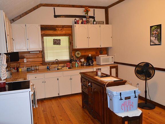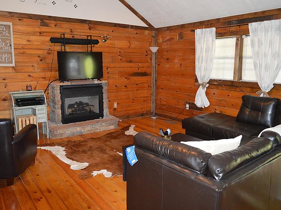 Rustic log cabin featuring 3 bedrooms, 1.5 bath, hardwood floors, Vaulted ceiling in living room with stone gas fireplace, tile shower and granite counter tops...all on 3.58 acres.