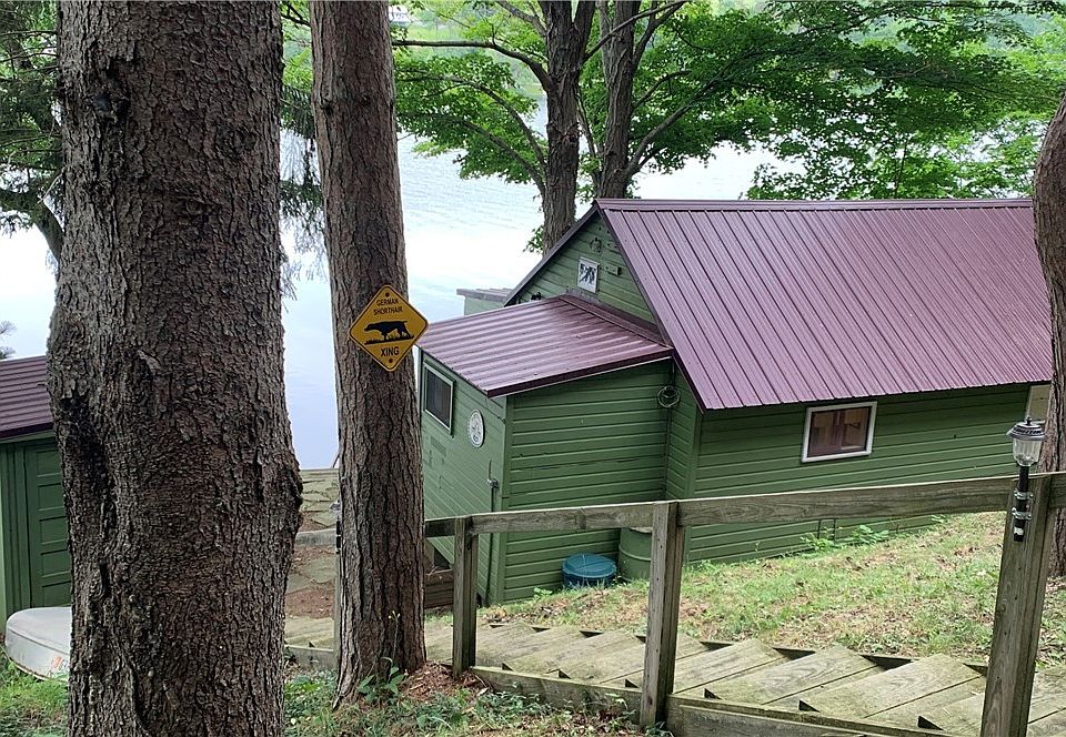 Completely furnished lakefront cabin all set for your waterfront boat,kayaks and enjoyment! Only 2 owners since 1971. 1 bedroom, living space with futon and enclosed front porch with 2 more couches. 1 full bath, fully equipped kitchen. 1 shed for outdoor and water equipment. Another shed up by road for other items. Metal roof was added in 2012 along with front room windows, room heater and knotty pine walls in front room. Pull down attic stairs has more storage space above. Bradley Brook Reservoir is a man made lake about 139 acres big and you can walk around its 2.8 miles .This private wooded cabin sits very secluded from neighbors. Ready for you to make your own updates! Located between Cazenovia and Hamilton.