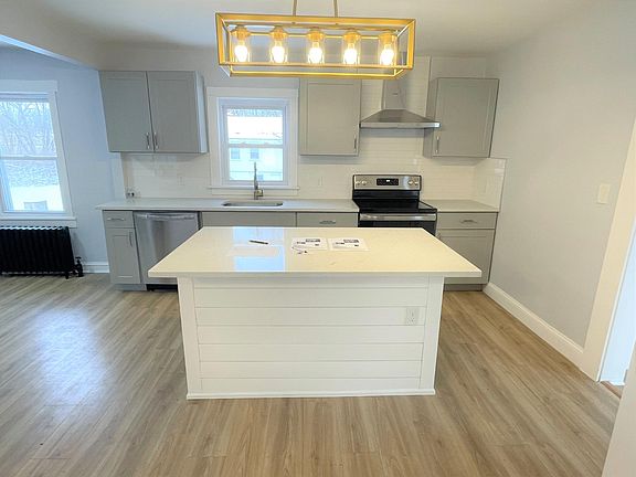 53 Woodbine St, Chelmsford MA. Lead Law compliant. Renovated in '23. NEW kitchen, two baths, flooring and paint. Mini-split AC/Heat. Single family detached home in Chelmsford's Center school district rated 9/10. The house is on a dead end street close to shopping and highways. First floor open floor plan with home office and full bath. Second floor has 4 bedrooms and a full bath. Primary bedroom has a large WIC. Parking for 4+ cars on driveway. Great for roommates. Large shed and unfinished basement for storage. First month and security due at signing. Excellent credit, proof of savings, proof of employment and good references required. Gross household income must exceed $120K. Tenants pay all utilities, maintains lawn and snow removal. No smokers. Prefer 1yr lease but will consider shorter term. Available for occupancy on September 1st or later. No fee!