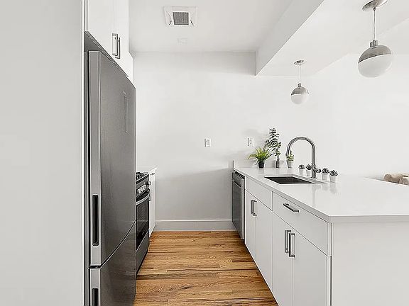 Stainless steel appliancesHardwood floorsSleek modern kitchen