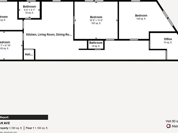 - Total interior livable area: 1,184 sqft