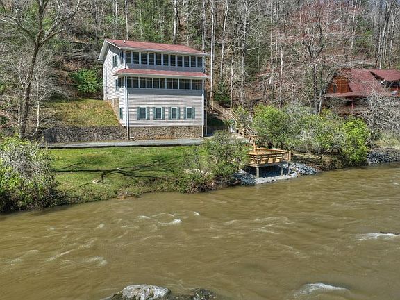 ~Coosawattee River Cottage~ 130ft on WIDEST section of river with river deck. First time on the market. Fully furnished interior with 3 bedrooms, 3 bathrooms, sunroom, screened porch, lower level storage and finished bar room. Neutral traditional style interior with hardwood floors, white cabinetry, jetted tub, large bathrooms, and tons of closet and storage areas. Gated community less than 10 minutes from downtown Ellijay. Great for full time or part time living as well as a vacation rental property. See and hear the river rapids inside this low maintenance river front home.