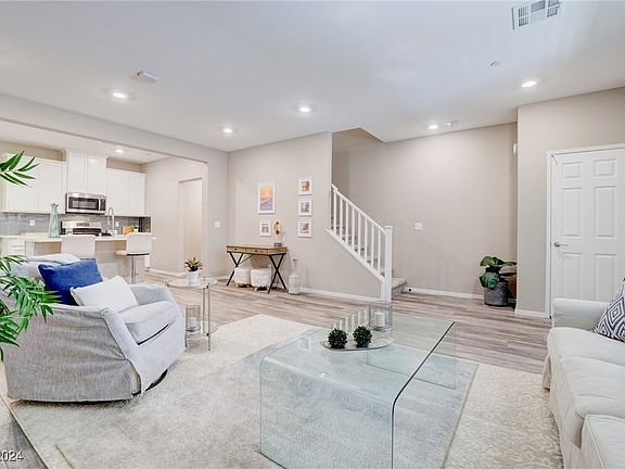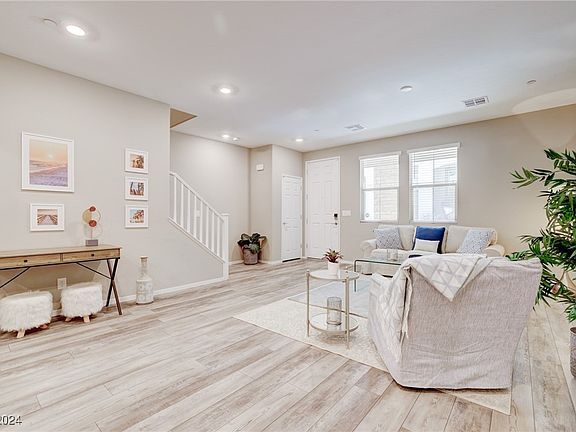 This lovely two-story townhouse is located in the gated community of Santa Rosa at The Paseos in West Summerlin. Built in 2020, the home offers 1,499 sq. ft. of living space, featuring 3 spacious bedrooms and 2.5 modern bathrooms. The open-concept layout is ideal for both relaxation and entertaining, highlighted by a sleek kitchen with quartz countertops, stainless steel appliances, and ample cabinetry. The rear two-car garage provides easy access to additional guest parking. Residents enjoy a community pool, outdoor lounge area, and neighborhood park with grills. Ideally situated in the vibrant Summerlin area, this home is close to shopping, dining, and outdoor recreation.