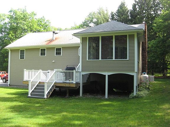 If your looking for a truly magnificent home, don't look any further. This 2118 sq. ft. meticulously maintained home on just under ten acres, is move in ready. All updates have been done. Roof, siding, Harvey windows, flooring, Buderus furnace, too much to list. Spacious kitchen, living room and dining area. Beautiful 3 season room off the dining area with gorgeous wood, cathedral ceiling. Eight huge windows for viewing nature. Master Suite with your own Master Bathroom. Pull down attic stairs reveals another finished room for the hobbyist or reading room. Oversized two car garage under is heated. Separate, detached 4 bay garage/work area is a handyman's dream. So much space, you won't be able to use it all. Brand new septic system just installed in Nov. 2015. Gazebo out in the back yard with power for music, cooking or anything you would want.You won't believe all this can be yours. Propane whole house generator to remain, never worry about power outages again!