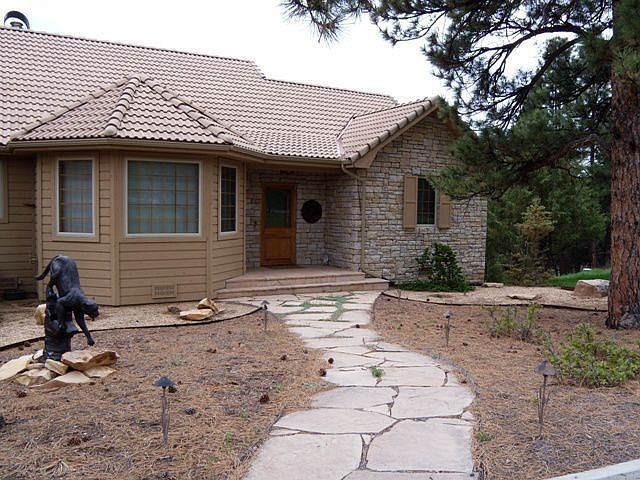This gorgeous two story home is nestled on a quiet cul-de-sac among fabulous Ponderosa Pines in the Divide Ranch & Club golf course community. The lot offers unobstructed views of both the San Juan & Cimarron mountain ranges, and both the views and your privacy are protected by the park-like open space to the east and south of the property. An open, contemporary floor plan & large deck make for easy entertaining. The kitchen has granite counters & the living room has a full wet bar with custom cabinetry.
