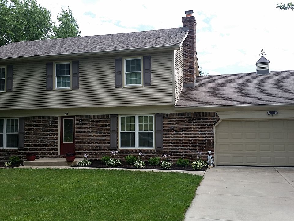 Several updates to this home in a great neighborhood. New roof, gutters & siding in 2009. New flooring throughout. Living room area and separate den with fireplace and hardwood floor. Separate dining area. Kitchen with plenty of storage, new granite counter tops and breakfast bar opens to a large sun room. Laundry room with utility sink off the garage. Nice sized bedrooms, and a large Master Bedroom with walk in closet. Large 2 car garage with a workbench and natural gas heater. Backyard features a large patio, separate firepit, and a basketball court. This home has plenty of storage with floored attic space above the garage, and a large central closet upstairs. There is also a 8'x12' mini-barn.
