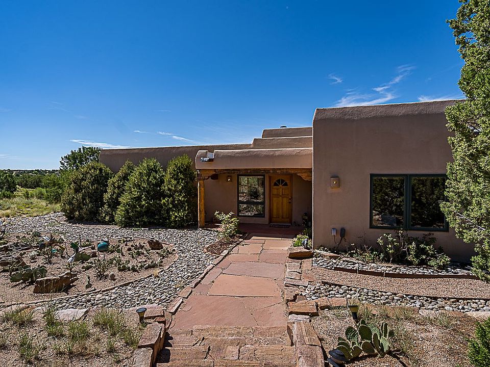 BUYER UNABLE TO PRODUCE, YOUR GAIN. Lovely open floor plan home nestled in a tree covered hillside backing up to greenbelt. Passive solar elements add to the energy efficiency of the natural gas, radiant floor heating system. Beautiful tile floors and herringbone wood ceilings with Vegas and corbeled beams in the main living areas. The relaxed dining and living room flow to a large bricked private portal adjacent to a newly built 294 sq. ft. ramada with expansive mountain and sunset views for easy year round entertaining. The large master suite is separated from the two additional large bedrooms. Includes large attached heated and cooled studio with an exterior door to the ramada. Roof upgraded in 3/18 and includes a transferable warranty through 3/21/20. Windows have custom fitted blinds. House includes whole house water filter, water softener and reverse osmosis water filter system in kitchen; skylights, gas fireplace, fresh paint, fenced yard, dog run, storage shed, cactus garden and large two car garage with new built in storage cabinets. Balsa Road has recently been paved.