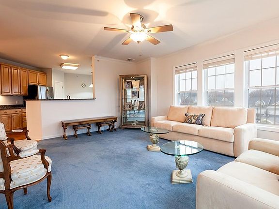 Rarely available over 55 +, 1585 sq ft bright, spacious, top floor, west facing 2 bed 2 bath corner unit condominium. Enjoy glorious evening sunsets from your living room or outside balcony. A gracious wainscoted entryway leads into an open floor plan living room, formal dining room and eat-in kitchen, perfect for entertaining. A king size master with ensuite awaits you along with a huge walk-in closet, double sinks, large soaking tub & separate shower. A large 2nd bedroom with full bath features double closets. This spacious condo also includes a full laundry room, coat closet, linen closet, kitchen pantry, and abundant storage. This unit offers everything today???s buyer needs for maintenance free living; garage parking, central air, and in unit laundry and a new Bosch tankless hot water system! Away from the traffic and conveniently located to 128 and route 2, this 55+ community boasts an in-ground pool, tennis court, exercise room, & community space. All you have to do is move in!