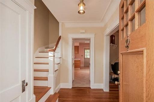 Welcome to this charming, well maintained Greek Revival located in a family oriented neighborhood close to major commuter routes. With beautiful hardwood finished floors, crown molding and wainscoting in the dining room this opportunity is not to be missed. There are two large bedrooms with excellent closet space on the 2nd floor and a full tiled bath. Formal living room, family room and spacious kitchen leading to enclosed porch with sliding glass windows. Basement includes a bedroom with half bath and large storage / workbench area. There is also a 1 car garage and off-street parking for three.