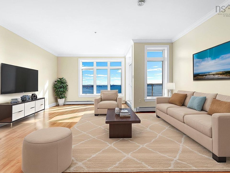 Embrace the condominium lifestyle in this beautifully updated 2-bedroom, 2-bath residence, with stunning and unobstructed views of Bedford Basin and Halifax skyline. Every detail has been thoughtfully curated, creating a blend of style, comfort, and functionality. Step into a bright, open-concept living room that opens onto a private 94-square-foot balcony perfect for relaxing and taking in the breathtaking water views. The modern U-shaped kitchen offers ample storage and a well-designed layout, perfect for hosting and enjoying family meals. The primary bedroom includes a walk-through closet leading to a private ensuite. Additional highlights are a large laundry room and updated lighting fixtures throughout. Condo fees cover water, hot water heating, an assigned indoor parking space, an indoor storage unit, a full-time superintendent, and maintenance of the common elements. Located in the highly desirable Larry Uteck community, you’re just minutes from shopping, dining, parks, and easy highway access to Halifax and Dartmouth. This is more than a condo - it’s a modern, move-in-ready retreat overlooking Bedford Basin!