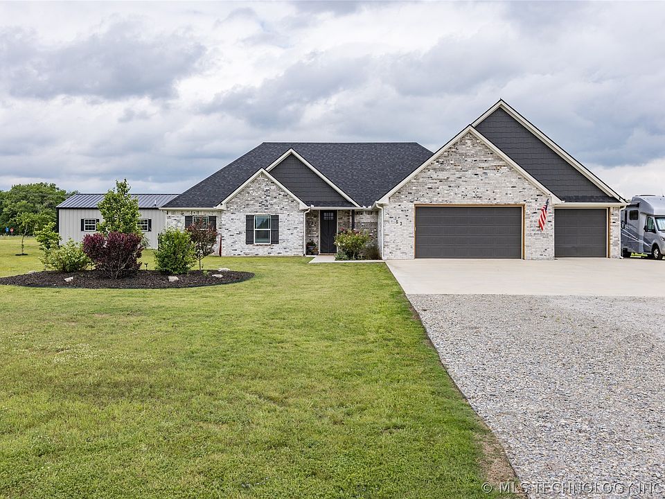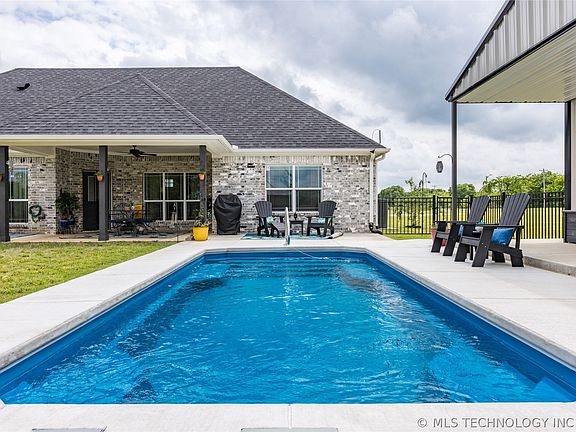 "The Blackberry Bliss Retreat." Welcome to your oasis of luxury living nestled in a serene, gated community! This meticulously crafted, custom-built home boasts 4 bedrooms, 3 bathrooms, and a SPACIOUS 3-car attached garage (ensuring ample space for your family and vehicles!) Situated on an EXPANSIVE 5.66-ACRE LOT, this homestead offers the perfect balance of space and convenience. Impeccable landscaping draws you outdoors, where a refreshing IN-GROUND POOL/SPA awaits your enjoyment. It's the ultimate outdoor retreat just in time for summer. Your safety and peace of mind are of top priority during storm season, with a DEDICATED SAFE ROOM providing a secure haven for you & your loved ones. Additionally, a 24x38 INSULATED SHOP w/electric and plumbing stands ready to fulfill your project dreams. With a complete bathroom inside to keep the main house pristine on those swimming pool days. For those with a passion for adventure, DEDICATED RV PARKING equipped with a 50-amp plug AND sewer cleanout awaits, ensuring hassle-free maintenance and enjoyment of your home on wheels. Indulge your green thumb (or creative pursuits like painting or illustrating) in the charming GREENHOUSE. It's a tranquil sanctuary for gardening, crafting, or simply unwinding in solitude. This home itself exemplifies meticulous attention to detail, superior construction quality, and versatile amenities (setting it apart as a true gem in today's market.) Seize the opportunity to make this luxurious retreat your own in a secure, inviting community. Your dream lifestyle awaits!