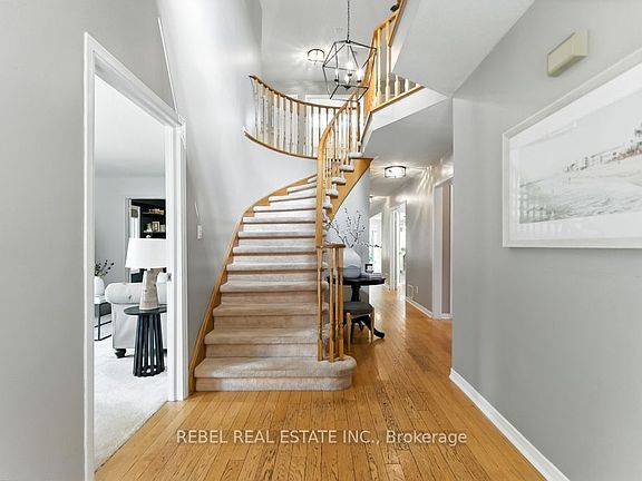 Welcome to 53 Braebrook Dr in Whitby's sought-after Rolling Acres community! This stunning family home offers over 4,500 sq. ft. of living space (3,000+ above grade) plus a finished basement, all within the highly desirable Glen Dhu/Sinclair/Fthr Leo Austin school districts. The spacious main floor features a formal living and dining room, private home office, and a completely renovated kitchen with quartz counters and stainless steel appliances overlooking the sunken family room with a new gas fireplace feature. The breakfast area walks out to a large deck and expansive backyard with a newer fence perfect for family gatherings and entertaining. Upstairs, you find an updated 4-pc main bath and 4 generous bedrooms, including a huge primary retreat with a renovated 5-pc ensuite. A unique spiral staircase connects the primary bedroom to both the kitchen and basement a one-of-a-kind design feature. The finished basement boasts a spacious rec room, bar, 3-pc guest bath, and sauna. Recent updates include new windows, roof, soffit and eaves, exterior soffit lighting, and furnace. Located close to top schools, parks, trails, transit, shopping, and more!