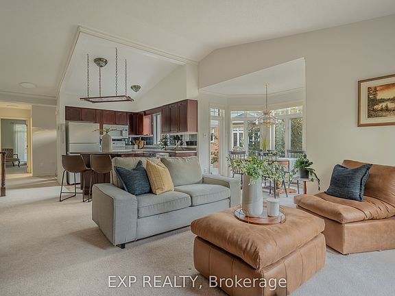 Welcome to 53 Bunting Road Unit 17, an End Unit Condo Townhome tucked away in a private cul-de-sac. This beautifully maintained end-unit bungalow condo offers rare privacy with serene views of the forest and ravine. Designed for both comfort and functionality, this home is filled with natural light, vaulted ceilings, and thoughtful updates throughout. The main floor features a spacious open layout with a walkout to a balcony overlooking the trees, a bright kitchen with newer appliances (fridge and dishwasher 2024), and two well-sized bedrooms. The primary suite is complemented by its own ensuite, and with a total of three bathrooms, theres room for family and guests. The finished walkout basement expands your living space with a large family room, patio access, plenty of storage, and the option to easily create a third bedroom with the addition of a wall. Outside, you'll enjoy a new deck (2021) perfect for entertaining or relaxing. This well-kept community offers more than most: window cleaning, eavestrough cleaning, summer BBQs, and social events all included in your condo lifestyle. Whether you're downsizing, looking for low-maintenance living, or searching for a private retreat, this home checks all the boxes.