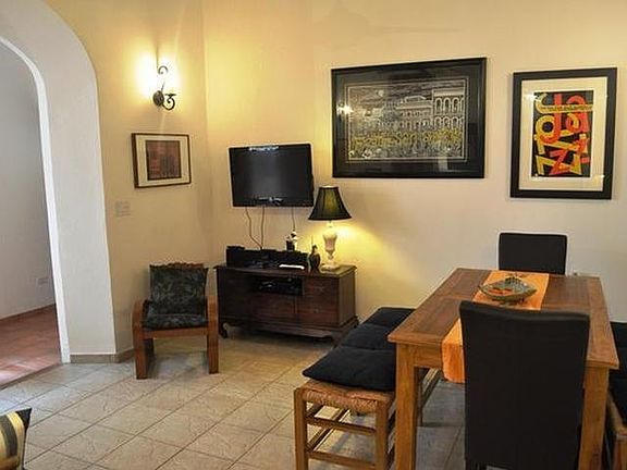 This tropical and openly designed 19th century ground floor 3BR Apt. boasts a beautiful large 370sq.ft. private interior patio - a quiet and charming get away from a long day of travels. The open feeling of this Spanish Colonial apartment is enhanced by the ability to access the interior patio from any part of the apartment via three seven foot gated arches. The patio has comfortable seating, an electrical awning for shade and a great place for quiet eating and conversations. The kitchen has been remodeled, is ready for cooking and opens to a large comfortable dining/living room with cable television, a stereo with Ipod docking and large ceiling fans. The first bedroom has a queen bed. The master bedroom has a sitting/dressing room with ample closet space, chairs, a king size bed, large ceiling fans and additional floor fans. The third bed room has like all other ample closet space and a double bed. Bedrooms does not have A/C at the moment.
