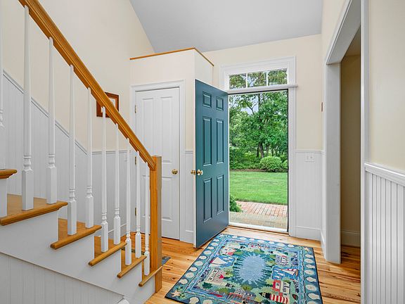Pristine, spacious, and private! At the end of a cul de sac, this lovely custom Cape-style home is well-built (with 2 x 6 construction and I beams), beautifully landscaped, and abuts private conservation on 1 side and public conservation on the other! Super floor plan--a 1st floor main bedroom with a walk-in closet, and an en suite bath that includes a walk-in shower, a jacuzzi tub, and a door to a deck and outdoor shower! A half bath and laundry rm on 1st flr too. The generous living room is warmed by a large corner wood-burning fireplace. A large kitchen/dining combo is graced by a wall of windows on the dining side looking out to the garden. Plus a south-west facing sun room captures light with its skylights and wall of windows. Pine floors thru-out 1st floor. Upstairs 2 lrge bedrooms and a full bath. Above the garage is a finished studio room with a utility sink and a full bathroom. The house is cooled with a combo of central AC and ductless units. The workshop attached to the garage is every tinkerer's dream! Lots of parking for your RVs, boats, and guests! Enjoy the lush garden and ponds from the breezeway and porch. See more in video! Buyers/agents to confirm details.