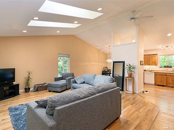 Beautiful craftsmen home in a serene setting in Sudden Valley! This 4 bed 2.75 bath home boasts an open floor plan on the main level with vaulted ceilings and skylights bringing natural light throughout. This spacious home also offers a master bedroom on the upper level, 2nd master bedroom and living room on the lower, real oak floors, and a fresh coat of exterior paint. Community amenities include a golf course, pool, lakefront access, tennis courts, 24/7 security, and much more!