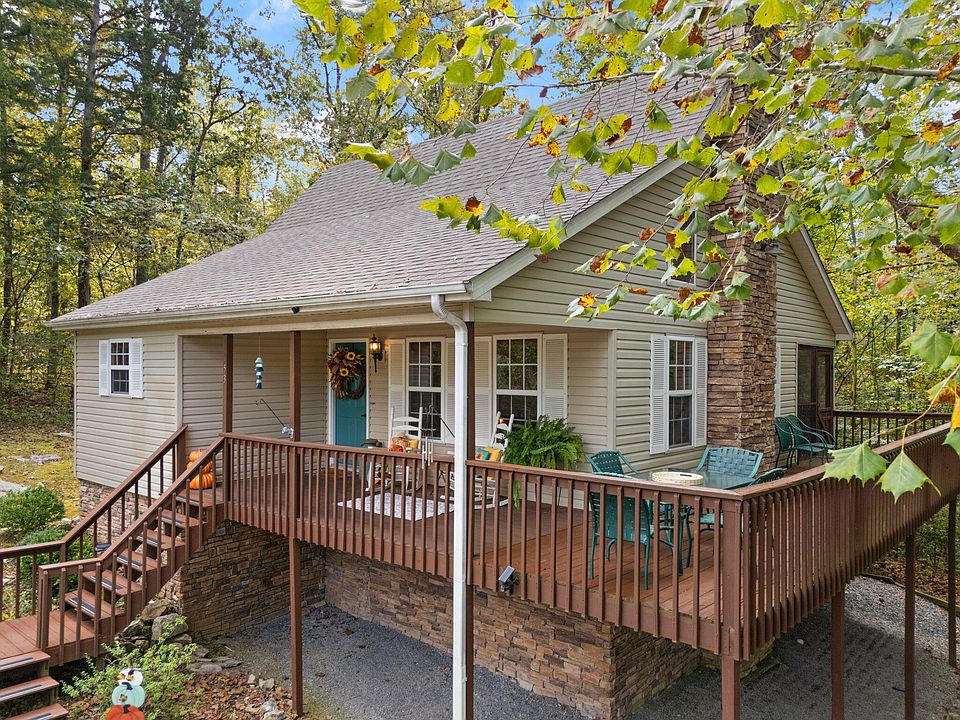 Are you ready for lake living on beautiful Lake Cumberland and are you ready for that Gatlinburg feel too. You get best of both worlds with this one and a half story bungalow nestled near the Daniel Boone National Forest and located in popular Lake Cumberland Resort. Check out the 3 levels of living in this 3 Bedroom, 3 Bath property with over 2000 SF of living space. The main level consist of a Great Room with soaring ceilings with lots of natural lighting and a beautiful fireplace with gas logs for comfort and ease. The Kitchen/Dining Room is well appointed with major appliances that convey. Along with the Master Bedroom and Full Bath. Tucked away in the upstairs loft are a Bedroom and Bathroom with walk-in shower. The lower level consist of a Family/Recreation Room complete with pool table that converts to an air hockey table for hours of entertaining fun or cozy up to another fireplace with gas logs. You also have a darling Bedroom with 2 twin trundle beds, Full Bath, Laundry/Utility Room including washer & dryer that conveys. With french doors leading to your outdoor fire pit area for cozy evenings and nights under the stars. Addition Features Include: Partial wrap-around deck. Main level screened in porch. Lower level screened in porch with your own Hot Tub overlooking the private wooded backyard. Nature abounds - watch wildlife from your many decks and porches for the ultimate in outdoor living. And comes furnished to start living the lake life or ideal for vacation rentals or both. Resort amenities includes: Community swimming pools, boat ramp, pickleball and tennis courts, cafe, general store, and gated community with 24 hour security. Special events during Summer vacation season. Call to schedule your private showing today and make Lake Cumberland Resort home.