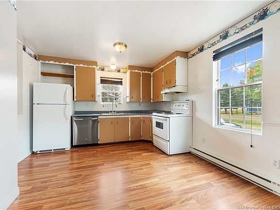 Affordable home with large detached garage in popular Irishtown. Main floor features kitchen, 2 bedrooms, full family bath, laundry area, and door leading to back deck. Lower level has a family room, bedroom, small bedroom or office, and storage room. Centrally located woodstove makes the house easy to heat. Detached garage measures 30 x 30 ft and has two 9ft tall overhead doors. Enjoy country living and pay lower property taxes yet be so close to the city. Appliances included. Property is sold 'as is'