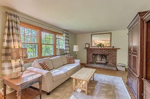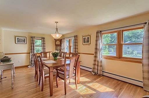 OFFERS DUE BY WEDNESDAY, 7/25 at 10 AM! You'll love coming home to this sunny, picture-perfect cape near the Burlington line. Meticulously cared for by longtime owner, it boasts thoughtful updates, including an energy-efficient continuous hot water/gas heat system and gorgeous hardwood floors throughout. Expanded eat-in kitchen with skylight opens to deck overlooking private wooded backyard with plenty of open space for gardening or outdoor fun. Large formal dining room, perfect for entertaining, opens to cozy fireplaced living room. Flexible floorplan offers easy single-level living, with spacious bedroom (or potential office) and updated full bath on the first floor. Second level offers three additional bedrooms and updated half bath. Partially finished basement features second fireplace and plenty of storage. This warm and inviting home is nestled in a beautiful country setting just minutes to schools, commuting roads, and shopping.