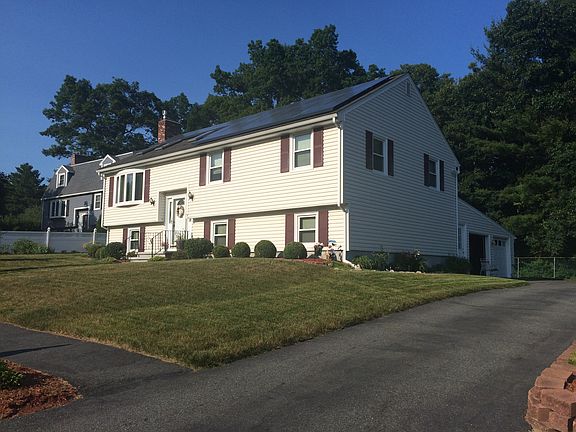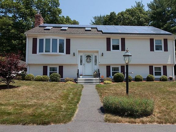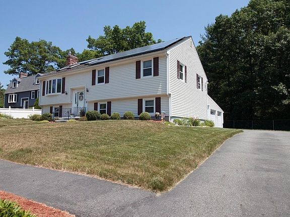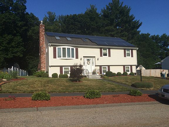 Very well maintained split entry home on the Tyngsborough line located on dead end street, vaulted ceiling in living room, dining room with HW floors, large kitchen, spacious master bedroom, two full bathrooms, finished family room in the basement, huge bonus room for gatherings/exercise equipment/storage, 2 car attached garage, maintenance free deck, private back yard abutting town forest, solar electric panels, very close to Vesper Country Club and drum hill shopping. Come check out this house today.