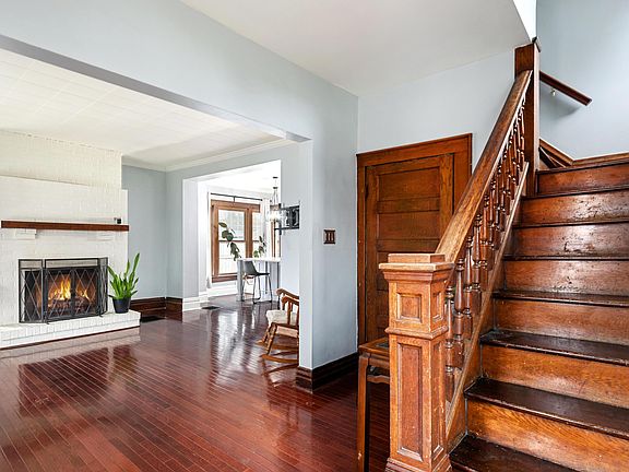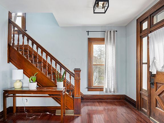 Welcome to this friendly & walkable South Clintonville neighborhood featuring a vintage, circa 1920, 2 1/2 story home on a wide corner lot. This charming home offers 4 spacious BR's, 2 full BA's, a living room w/ a wood-burning fireplace that opens to a banquet size dining room, & an updated kitchen w/ granite countertops, Shaker cabinetry, & a bonus pantry room with wide woodwork & soaring ceilings. The insulated replacement windows and new furnace (2015) ensure comfort. The property also boasts an extra large 2-car garage and a fenced yard with a play area and garden, including apple, peach, cherry, & plum trees. The finished third level provides a beautiful bonus room with high ceilings, perfect for a kids' space, office, or the 4th BR.