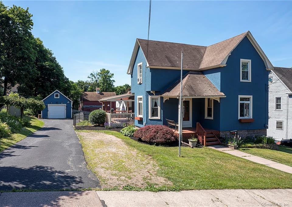 BACK ON THE MARKET AND READY FOR YOU This wonderful Victorian colonial offers nice space both inside and outside to entertain guests year around. During the warmer months, you have a covered back deck, yard space and an in-ground pool to enjoy being outdoors. The pool house also features a screened in room and has plenty of storage for pool supplies, floats, or retreat to read a book. Inside the house there are many updates, starting with the remodeled kitchen that was completed about a year ago, with stylish blue cabinets, back splash, stainless appliances, quartz counters and a vinyl flooring. There is a dining room and living room at the front of the house and rounding out the first floor is a full bath. Upstairs you have three spacious bedrooms all with plenty of closet space. The full bath was updated and has a walk-in shower. And the laundry is conveniently located in the hallway. Need a little more space or storage, the walk-out basement has very high ceilings and offers a walk-in cedar closet, three rooms all with heat (gas tied into the furnace so you could have an office, den, playroom, craft area, you name it the basement in this old house is very usable. Rarely seen in New England, this home has a stucco siding that as the owner said is so thick it helps keep home warm. Rounding out the property is an old walk-in root cellar in the backyard and a one-car garage with loft for additional storage. You will want to see this home