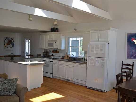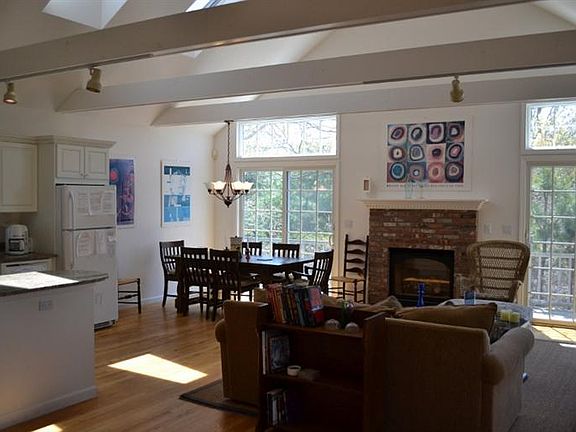 Captivating contemporary cape with light and airy rooms soaking in the island sun. Popular appealing vacation design with cental air conditioning. Conveniently located near the bike path and state forest. Great room with vaulted ceiling and gas fireplace. The 900 sq ft wrap around deck attached to the screened porch. Excellent rental history...close now and cash in on the 2012 summer rentals. 1st Floor: Wonderful, open airy great room floorplan with vaulted ceiling and gas fireplace. Wood floors. Andersen sliders access the wrap around mahogany deck. Two bedrooms share a large main level bath. Laundry room. Screened porch off the kitchen leads to out door shower and the 25x22 garage. 2nd Floor: Large master bedroom suite with private bath.