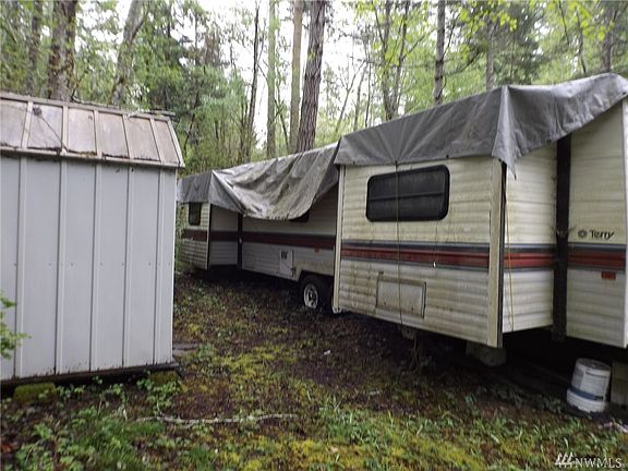 Trailer included, water and power hook ups. No septic. Trailer has an enlarged holding tank built in and low flow toilet. 12 ft aluminum boat included. Two parcels of land beginning at the corner of Hazel Point and Eaton Rds. 0.42 acres total. Adjacent parcel on Hazel Point Rd. also for sale. Ownership comes with eligibility to join the Coyle Community Club with use of the marina. Also included is a 12 foot aluminum boat with motor , crab traps and other contents of the shed.
