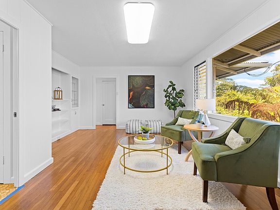 This well-maintained Hilo home offers classic plantation-era charm with solid construction and a serene, private setting. Tucked at the end of a quiet street and bordered by two large undeveloped State and County parcels, the property enjoys exceptional privacy and the soothing sound of Ainako Stream, creating a retreat-like atmosphere in the heart of town.<br>The interior of the home has been freshly painted with large picture windows and refinished hardwood floors, a lasting quality not often found in modern homes. The kitchen retains its original charm while incorporating newly updated appliances. The floor plan features three well sized bedrooms with original built-in cabinetry and a full bathroom with classic period details.<br>Practical features include a spacious double carport with an attached laundry room and a second full bathroom with walk-in shower—ideal for rinsing off after a day at the beach or working in the yard. The laundry area connects directly to the kitchen for added convenience. Built on a classic post-and-pier foundation, the home also offers generous under-house storage, while durable vinyl siding provides low-maintenance living in Hilo’s tropical climate.<br>Perhaps the most appealing feature of this property is the beautifully landscaped, terraced yard that feels like your own secret garden. Meandering pathways lead through mature hapuʻu ferns and a diverse collection of ornamental plants, with a large grassy lawn surrounded by the forest beyond offering the ultimate tranquil escape.<br><br>This central location is hard to beat—just minutes to Hilo Benioff Medical Center (a major employment center), Downtown Hilo, the University of Hawaiʻi at Hilo, and major shopping centers. Enjoy walking access to schools, a neighborhood café, gas station and convenience store, while nearby Saddle Road makes trips to West Hawaiʻi’s beaches and resorts quick and easy. Don't miss this rare opportunity to own a well-maintained home in a central location!