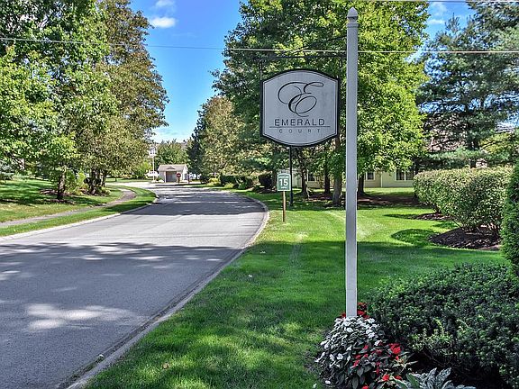 Premiere location for this exquisite and breathtaking Villa in this desirable 55+ community of Emerald Court Estates. This bright and sunny townhouse has central air and offers an amazing spacious kitchen with Corian countertops, stainless steel appliances, maple cabinets, dining area, pantry closet and laundry area. The gleaming hardwood floors on the main level flow nicely into the sun-drenched dining room with French doors to patio, and into the living room with gas fireplace, neutral décor. A first-floor master suite with hardwood floors, vaulted ceilings, two closets, ensuite bath with double sinks, soaking tub and separate shower stall. The hardwood stairs to the second floor take you to a good size second bedroom and a full bath, loft area, and office space and two storage areas, two-car garage with pull-down stairs with additional storage space. True sense of community in this well managed complex that has a clubhouse and exercise room. Ideal spot, close to highways, shops/restaurants. This beautiful townhouse could be yours!