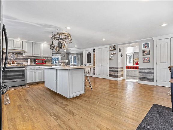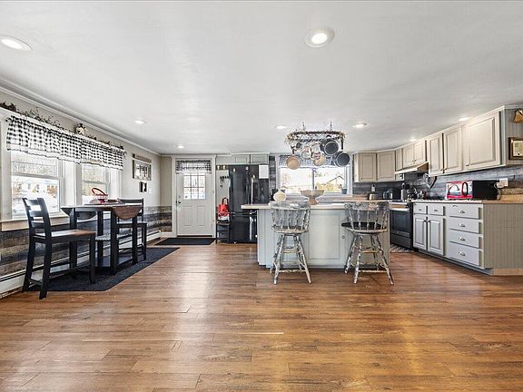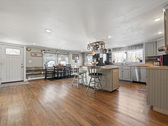 ROOM TO MOVE! A large eat-in kitchen is a great space where families and friends can gather to share stories and celebrate special events. The gas range and pantry are ready for the cook, and a kitchen island offers ample workspace for additional helpers, as well as plenty of seating for all around the large kitchen space. Glass sliders from the living room to the deck flow to the private backyard. A large first-floor bedroom and full bath, including a washer and dryer hook-up, make this home perfect for first-floor living. 2 more large bedrooms are located on the second floor. The detached 2-car garage includes a workshop with storage for canoes and kayaks. Your four-legged friends will enjoy the fenced-in area in the backyard. Sokokis Lake Boat Launch and village shops are just a 1/3 mile away.